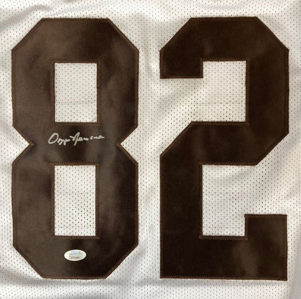 Featured is an Ozzy Newsome signed custom football jersey. This jersey has been hand signed by Newsome and comes with the JSA hologram and certificate of authenticity. This jersey features professionally sewn letters and numbers and is size XL. This jersey has no team tags or emblems and is intended as a sports collectible. This jersey would make a great addition to any sports memorabilia collection!. SPECIFICATIONS Autographed By: Ozzy Newsome Team: Cleveland Browns Sport: Football Authentication: James Spence Authentication (JSA)