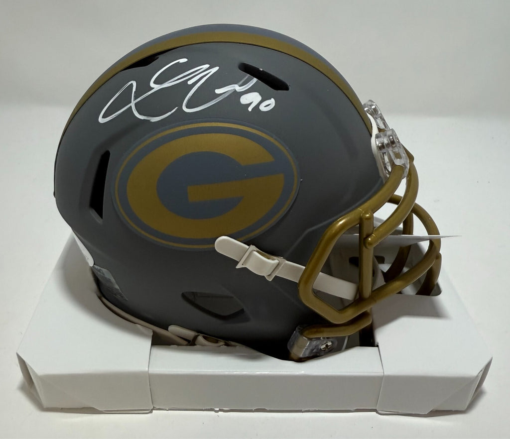 Riddell SLATE Speed Mini Helmet hand signed by Green Bay Packers 2023 1st Round Pick LUKAS VAN NESS. This item is signed in Green paint pen. This would make a great addition to any Packers collection. This item was signed at a private signing with us. This item is guaranteed to be 100% authentic and will include a COA serial numbered hologram from JSA Authentication.