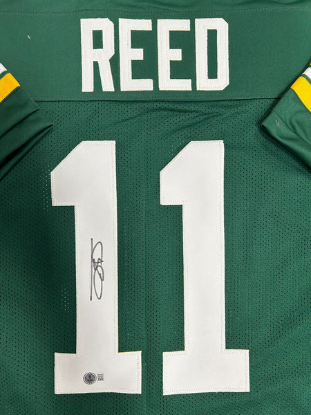 Custom Replica jersey hand signed by Green Bay Packers Receiver JAYDEN REED. The signature is in Black sharpie. This jersey was signed at a private signing with us and would make a great addition to any Packers collection! The jersey size is XL and all letters and numbers are sewn in.This autograph is guaranteed to be 100% authentic and will include a COA hologram from Beckett Authentication.