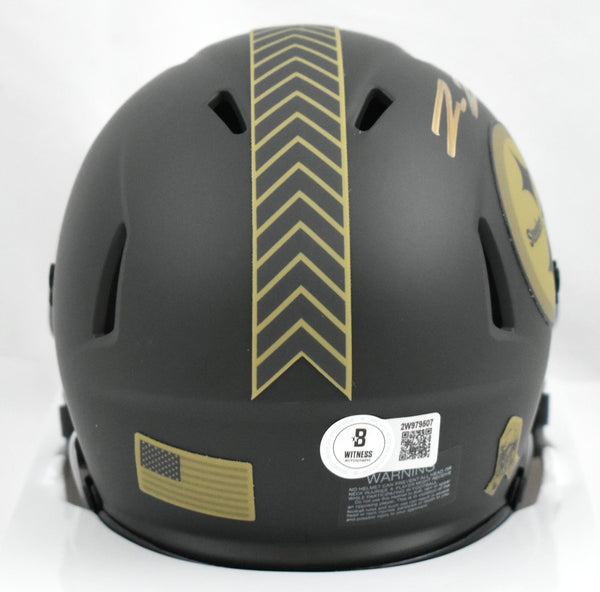 This is a hand autograph of Pat Freiermuth of the Pittsburgh Steelers on a Riddell Football Salute to Service 2025 Speed Mini Helmet. This item has a Beckett Witnessed Authentication, which comes with a numbered hologram and a QR code for verification. You can view this item on the Beckett Authentication website, and it shows when and where the item was signed. It was signed either at a public autograph appearance or a private signing. This is a stock photo of the item. Although you may not receive this exact item, the item you receive is virtually identical and brand new in great shape. This is a hand autograph of Jack Sawyer of the Pittsburgh Steelers on a Riddell Football Speed Mini Helmet. This item has a Beckett Witnessed Authentication, which comes with a numbered hologram and a QR code for verification. You can view this item on the Beckett Authentication website, and it shows when and where the item was signed. It was signed either at a public autograph appearance or a private signing. This is a stock photo of the item. Although you may not receive this exact item, the item you receive is virtually identical and brand new in great shape.