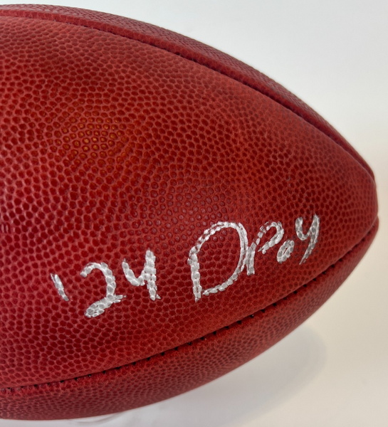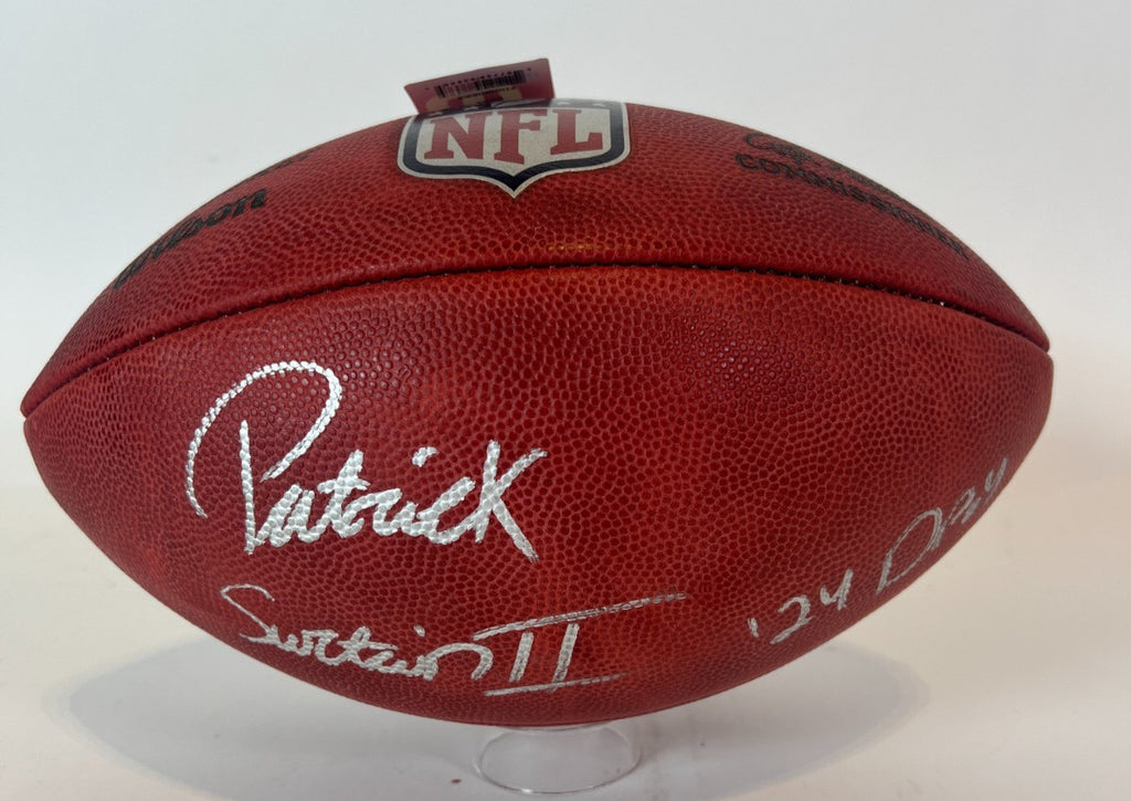Celebrate the 2024 Defensive Player of the Year Own a piece of NFL history with this authentic football personally signed and inscribed by Patrick Surtain II, featuring the prestigious '24 DPOY inscription commemorating his 2024 Defensive Player of the Year achievement. This exclusive collectible captures one of the most significant moments in Denver Broncos history. Product Highlights: Authentic autograph from Patrick Surtain II, 2024 NFL Defensive Player of the Year Exclusive inscription: '24 DPOY - marking his historic achievement Official NFL football - regulation quality Beckett Certificate of Authenticity (COA) included - verified authenticity guaranteed Limited availability - commemorating a milestone season Why This Collectible is Special: Patrick Surtain II's 2024 Defensive Player of the Year award solidified his status as one of the NFL's elite cornerbacks. This signed football with the '24 DPOY inscription represents a defining moment in his career and Broncos franchise history. As one of the league's premier shutdown corners, Surtain II has dominated opposing receivers and become the face of Denver's defense. Each signature comes with Beckett Authentication Services certification, the gold standard in sports memorabilia authentication, ensuring this investment piece is 100% authentic. A must-have for serious Denver Broncos collectors and NFL memorabilia enthusiasts. Display this championship-caliber collectible with pride!