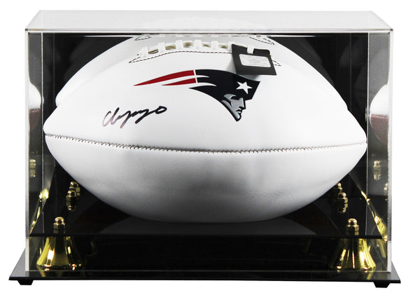 This Autographed Franklin White Panel Logo Football W/ Uv Mirrored Back Acrylic Display Case has been Personally Signed by Christian Gonzalez of the New England Patriots. This item is 100% Authentic to include a hologram by Beckett Authentication Services. This item will come with an affixed Beckett Authentication Services (BAS) authentication sticker, which includes a scannable QR code to verify authenticity. Please note that Beckett no longer provides serial-numbered COA cards, and the attached BAS sticker will serve as the complete authentication for this item. This is a BAS Witnessed Protection Program item which means a Beckett Authentication Service representative was present when this item was being signed. We conducted an autograph signing with Christian Gonzalez where multiples of the same item were signed. While the photographs are representative of this item, the size, placement and strength of the signature may vary. Each item is hand signed, therefore, each autograph is unique. This item can be verified through BAS Witnessed.