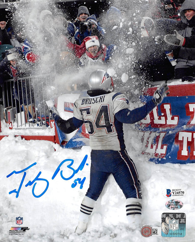This Autographed Vertical 8x10 Photo has been Personally Signed by Tedy Bruschi of the New England Patriots. This item is 100% Authentic to include a hologram by Beckett Authentication Services, it does not come with a matching numbered COA. The authenticity can be verified on Beckett Authentication Services website.
