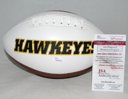 Paul Krause, former All-American defensive back for the Hawkeyes, has hand signed this Iowa white panel logo football at a private signing. This item comes with a certificate of authenticity (COA) from JSA - James Spence Authentication and was signed in the presence of one of their representatives. You will receive a serial-numbered COA along with a matching serial-numbered sticker on the ball. The authenticity can be verified online by entering the serial number.Item pictured may not be the exact item you will receive. It will be similar quality, and we guarantee your satisfaction.