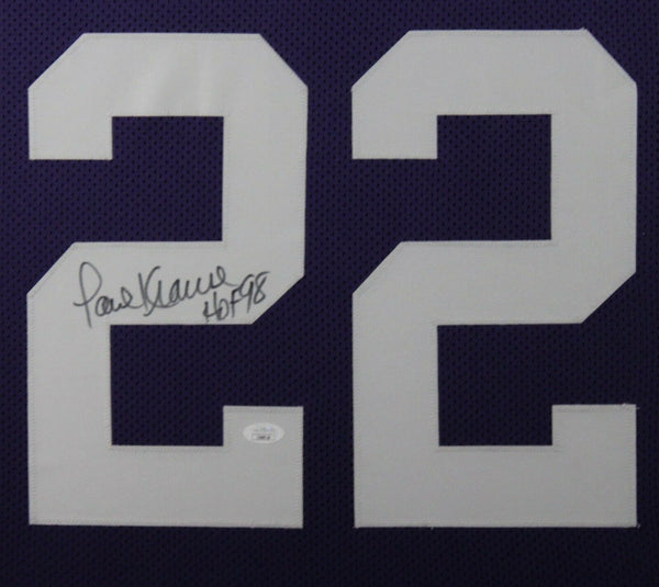 PAUL KRAUSE AUTOGRAPHED & PROFESSIONALLY FRAMED PRO-STYLE JERSEY(Occasionally our own stock pictures are used at times due to quantity of framing, all frames will look identical as the one pictured)Item is accompanied with a Certificate of Authenticity issued by JSA and corresponding tamper proof hologram on the jersey.THE FRAMED JERSEY MEASURES 35"x 44" & COMES WITH THE FOLLOWING:-UV Protected Acrylic-Triple Acid Free Team Colored Matting-2 High Quality 8"x10" Photos-Team Logo