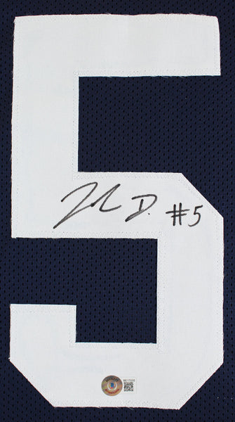 This Autographed Navy Pro Style Jersey has been Personally Signed by Jahan Dotson of the Penn State Nitnay Lions. This item is 100% Authentic to include a hologram by Beckett Authentication Services. This item may come with the new Beckett Authentication hologram that has a scannable QR code rather than the traditional COA. If you would like to have a COA, you are welcome to reach out to Beckett for a printed certification once you receive your item. We conducted an autograph signing with Jahan Dotson where multiples of the same item were signed. While the photographs are representative of this item, the size, placement and strength of the signature may vary. Each item is hand signed, therefore, each autograph is unique. This item can be verified through BAS. This is a X-Large sized, non-branded, custom-stitched Jersey.