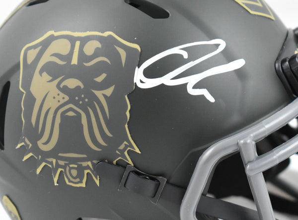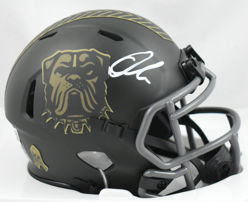 This is a hand autograph of Quinshon Judkins of the Cleveland Browns on a Riddell Football Salute to Service 2025 Speed Mini Helmet. This item has a Beckett Witnessed Authentication, which comes with a numbered hologram and a QR code for verification. You can view this item on the Beckett Authentication website, and it shows when and where the item was signed. It was signed either at a public autograph appearance or a private signing. This is a stock photo of the item. Although you may not receive this exact item, the item you receive is virtually identical and brand new in great shape. This is a hand autograph of Quinshon Judkins of the Cleveland Browns on a Riddell Football Salute to Service 2025 Speed Mini Helmet. This item has a Beckett Witnessed Authentication, which comes with a numbered hologram and a QR code for verification. You can view this item on the Beckett Authentication website, and it shows when and where the item was signed. It was signed either at a public autograph appearance or a private signing. This is a stock photo of the item. Although you may not receive this exact item, the item you receive is virtually identical and brand new in great shape.