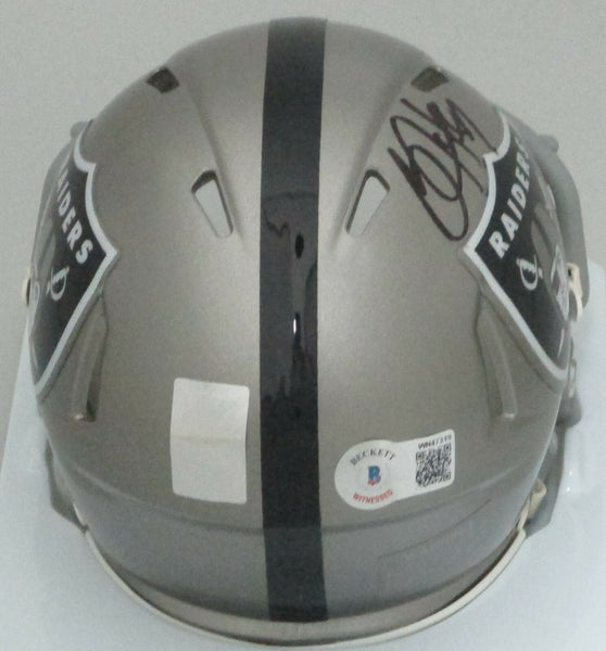 Oakland Raiders FLASH Speed Mini Helmet hand signed by Raiders Legend BO JACKSON. The signature is in Black sharpie. This item was signed at a public signing and would make a great addition to any Auburn or Raiders collection! This item is guaranteed to be 100% authentic and will include a COA serial numbered hologram from Beckett Authentication.