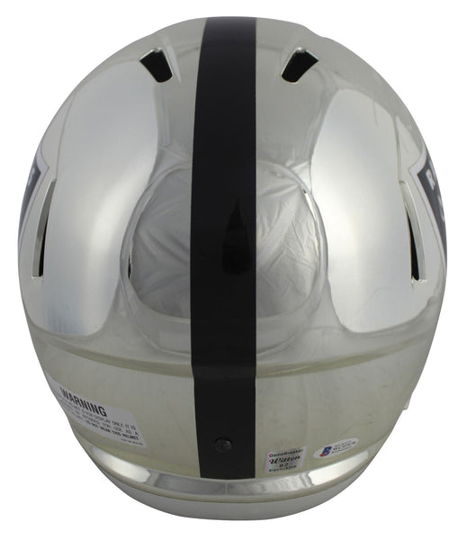 This Autographed Alternate Chrome Riddell Full Size Speed Rep Helmet has been Personally Signed by Jason Witten of the Las Vegas Raiders. This item is 100% Authentic to include a Certificate of Authenticity (COA) / hologram by Beckett Authentication Services. This is a BAS Witnessed Protection Program item which means a Beckett Authentication Service representative was present when this item was being signed. This is a stock item. We conducted an autograph signing with Jason Witten and we have several of these available. The one you will receive will be of equal quality to the one pictured. This item can be verified through BAS Witnessed.