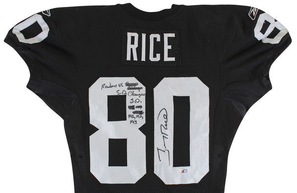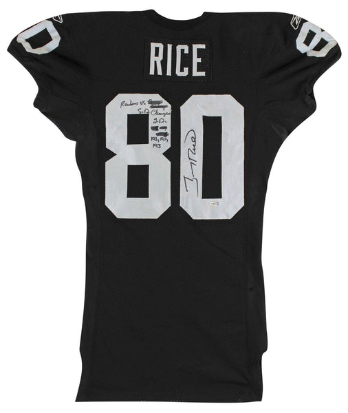 Raiders Jerry Rice "3 TD" Signed 2001 Game Used Reebok Black Jersey Fanatics