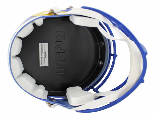 This Autographed Riddell Full Size Speed Rep Helmet W/ Uv Mirrored Back Acrylic Display Case has been Personally Signed by Blake Corum of the Los Angeles Rams. This item is 100% Authentic to include a hologram by Beckett Authentication Services. This item will come with an affixed Beckett Authentication Services (BAS) authentication sticker, which includes a scannable QR code to verify authenticity. Please note that Beckett no longer provides serial-numbered COA cards, and the attached BAS sticker will serve as the complete authentication for this item. This is a BAS Witnessed Protection Program item which means a Beckett Authentication Service representative was present when this item was being signed. We conducted an autograph signing with Blake Corum where multiples of the same item were signed. While the photographs are representative of this item, the size, placement and strength of the signature may vary. Each item is hand signed, therefore, each autograph is unique. This item can be verified through BAS Witnessed.