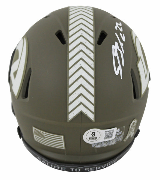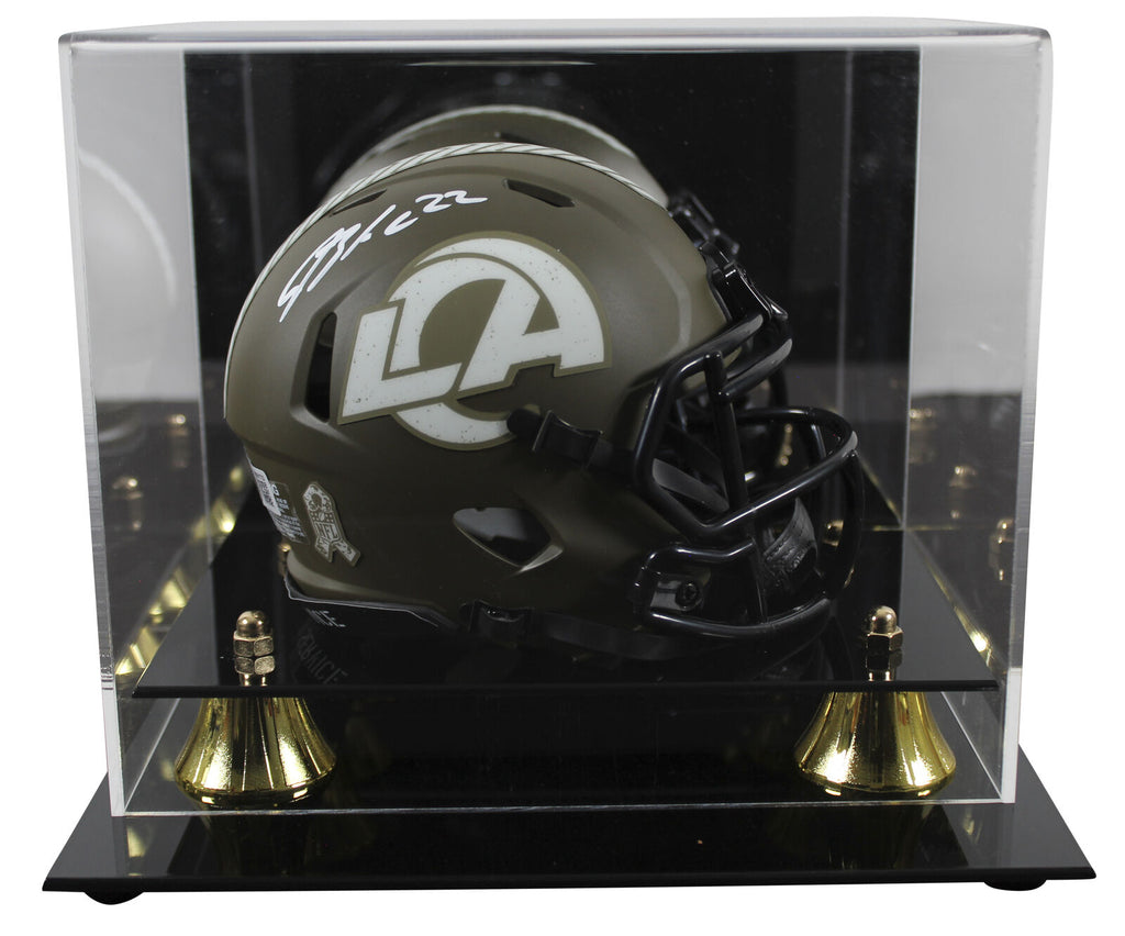 Rams Blake Corum Signed Salute To Service Speed Mini Helmet w/ Case BAS Witness