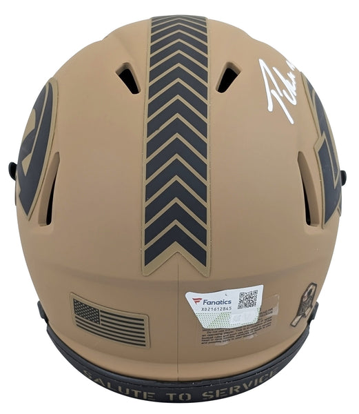 This Autographed Alternate 2023 Salute To Service II Speed Mini Helmet has been Personally Signed by Puka Nacua of the Los Angeles Rams. This item is 100% Authentic to includes a numbered hologram by Fanatics. We conducted an autograph signing with Puka Nacua where multiples of the same item were signed. While the photographs are representative of this item, the size, placement and strength of the signature may vary. Each item is hand signed, therefore, each autograph is unique. This item can be verified through Fanatics.