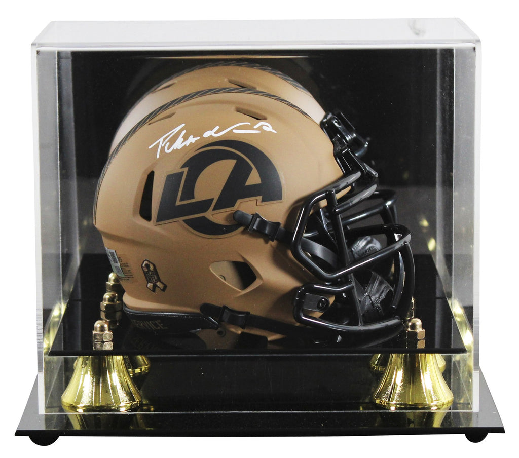 This Autographed Alternate 2023 Salute To Service II Speed Mini Helmet W/ Uv Mirrored Back Acrylic Display Case has been Personally Signed by Puka Nacua of the Los Angeles Rams. This item is 100% Authentic to includes a numbered hologram by Fanatics. We conducted an autograph signing with Puka Nacua where multiples of the same item were signed. While the photographs are representative of this item, the size, placement and strength of the signature may vary. Each item is hand signed, therefore, each autograph is unique. This item can be verified through Fanatics.