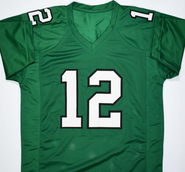 Randall Cunningham Autographed Green Pro Style Jersey - Beckett W Hologram *Black THIS IS NOT A NFL JERSEY. THIS HAS NO TAGS, NO LOGOS, NO EMBLEMS. This is a hand autograph of Randall Cunningham on a Custom Made (non name brand) Authentic Style Jersey with stitched letters and numbers. This item has a Beckett Witnessed Authentication, which comes with a numbered hologram and a QR code for verification. You can view this item on the Beckett Authentication website, it shows when and where the item was signed. It was signed either at a public autograph appearance or a private signing. This is a stock photo of the item. Although you may not receive this exact item, the item you receive is virtually identical and brand new in great shape. Jersey size is XL.