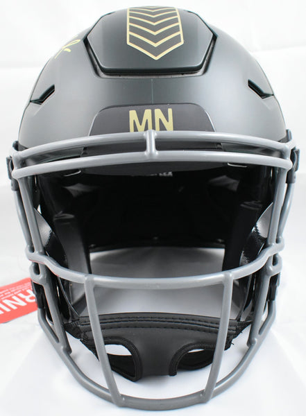 This is a Randy Moss of the Minnesota Vikings autographed Riddell football full size Salute to Service 2025 SpeedFlex Authentic helmet. This item has a Beckett Witnessed Authentication, which comes with a numbered hologram and a QR code for verification. You can view this item on the Beckett Authentication website, and it shows when and where the item was signed. It was signed either at a public autograph appearance or a private signing. This is a stock photo of the item. Although you may not receive this exact item, the item you receive is virtually identical, brand new, and in great shape. *Autograph location may vary* This is a Randy Moss of the Minnesota Vikings autographed Riddell football full size Salute to Service 2025 SpeedFlex Authentic helmet. This item has a Beckett Witnessed Authentication, which comes with a numbered hologram and a QR code for verification. You can view this item on the Beckett Authentication website, and it shows when and where the item was signed. It was signed either at a public autograph appearance or a private signing. This is a stock photo of the item. Although you may not receive this exact item, the item you receive is virtually identical, brand new, and in great shape. *Autograph location may vary*
