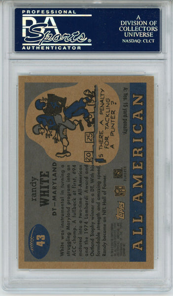 Randy White Autographed 2005 Topps All American Trading Card PSA Slab 32602 The number in the listing title is just an inventory sku for our records and is not the authentication number. This is a 2005 Topps All American Trading Card that was personally autographed by Randy White. This has been slabbed by Professional Sports Authentication (PSA) and includes a certificate of authenticity from Denver Autographs.