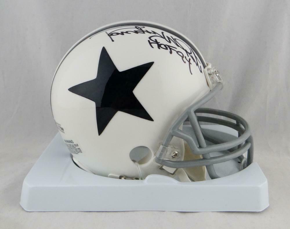 Randy White Signed Dallas Cowboys 60-63 TB Mini Helmet w/ HOF- Beckett W Auth This is a hand autograph of Randy White of the Dallas Cowboys on a Riddell Football 2004 Throwback Mini Helmet and inscribed with HOF 94. This item has a Beckett Witnessed Authentication, which comes with a numbered and a matching Beckett Certificate of Authenticity. You can view this item on the Beckett Authentication website. It was signed either at a public autograph appearance or a private signing. This is a stock photo of the item. Although you may not receive this exact item, the item you receive is virtually identical and brand new in great shape.