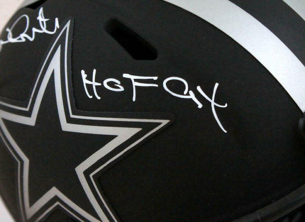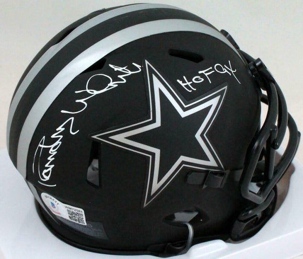 Randy White Autographed Dallas Cowboys Eclipse Mini Helmet w/ HOF - Beckett W Hologram *White This is a hand autographed helmet of Randy White of the Dallas Cowboys. This is a Riddell Football Eclipse Mini helmet inscribed HOF. This item has a Beckett Witness Authentication, which comes with a Beckett numbered hologram and a generic Certificate of Authenticity. You can view this item on the Beckett website, it shows when and where the item was signed. It was signed either at a public autograph appearance or a private signing. This is a stock photo of the item. Although you may not receive this exact item, the item you receive is virtually identical and brand new in great shape.