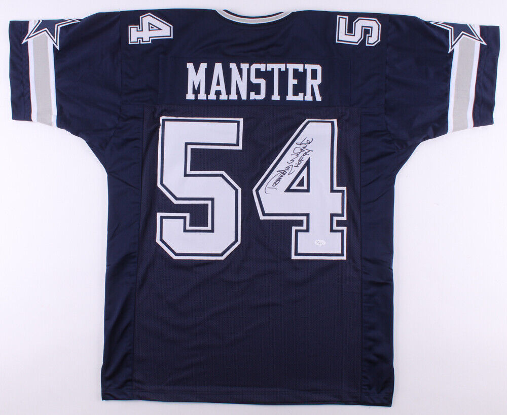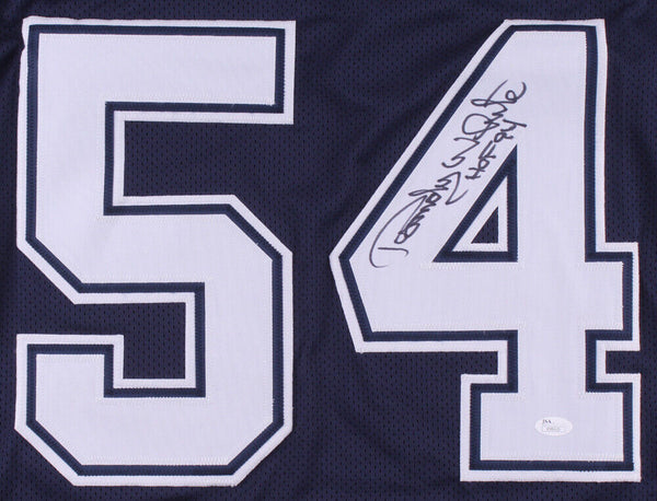 Custom on-field style jersey, everything sewn on. Jersey has been hand-signed in black paint pen by Randy White (HOF). White played professionally for the Dallas Cowboys from 1975 to 1988. He is a member of the College Football Hall of Fame, the Pro Football Hall of Fame and the Delaware Sports Museum and Hall of Fame. The autograph includes an official James Spence Authentication Services serially numbered hologram and matching COA for authenticity purposes.