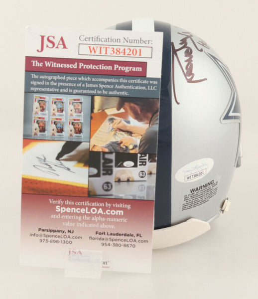 Riddell mini-helmet has been hand-signed in black felt-tip pen by Randy White (HOF).Please note, there is a stray pen mark on the top of the helmet.White played professionally for the Dallas Cowboys from 1975 to 1988. He is a member of the College Football Hall of Fame, the Pro Football Hall of Fame and the Delaware Sports Museum and Hall of Fame.The lot / autograph(s) includes an official James Spence Authentication (JSA) hologram and matching COA for authenticity purposes. The signing of this item was witnessed by JSA.Authentication: JSA COA