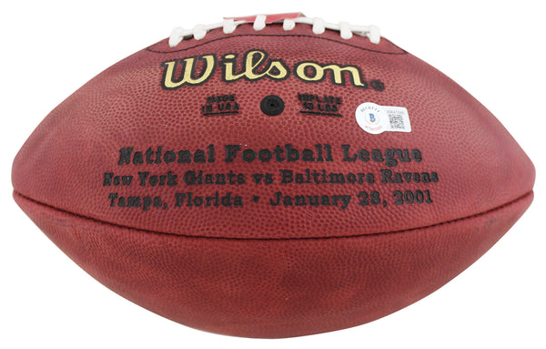 This Autographed Wilson Super Bowl XXXV Logo Duke Nfl Football has been Personally Signed by Ray Lewis of the Baltimore Ravens. This item is 100% Authentic to include a hologram by Beckett Authentication Services. This item may come with the new Beckett Authentication hologram that has a scannable QR code rather than the traditional COA. If you would like to have a COA, you are welcome to reach out to Beckett for a printed certification once you receive your item. This is a BAS Witnessed Protection Program item which means a Beckett Authentication Service representative was present when this item was being signed. We conducted an autograph signing with Ray Lewis where multiples of the same item were signed. While the photographs are representative of this item, the size, placement and strength of the signature may vary. Each item is hand signed, therefore, each autograph is unique. This item can be verified through BAS Witnessed.
