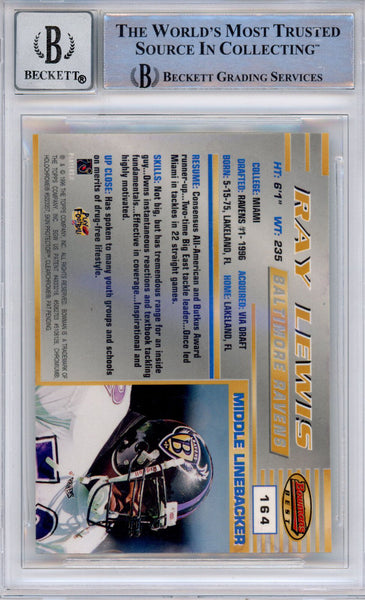 Ray Lewis Autographed 1996 Bowmans Best #164 (Grade 10) Slabbed BAS 39884 The number in the listing title is just an inventory sku for our records and is not the authentication number. The item pictured is a stock photo unless otherwise noted. This is a Slab Ten Trading Card that was personally autographed by Ray Lewis. Includes a certificate of authenticity from Beckett Authentication Services (BAS) and Denver Autographs.