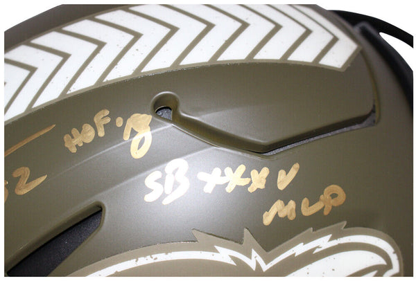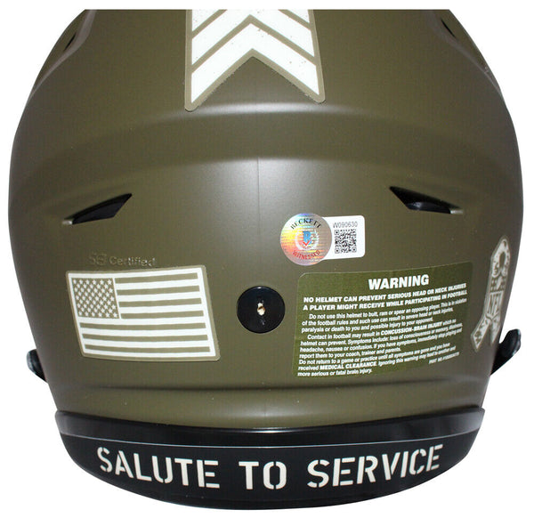 Ray Lewis Autographed Baltimore Ravens Pro Salute Flex Helmet Beckett 40601 The number in the listing title is just an inventory sku for our records and is not the authentication number. The item pictured is a stock photo unless otherwise noted. This is a Baltimore Ravens Speed Flex Salute Full Size Authentic Helmet that was personally autographed by Ray Lewis with inscription "HOF '18 SB XXXV MVP". Includes a certificate of authenticity from Beckett Authentication Services (BAS) and Denver Autographs.