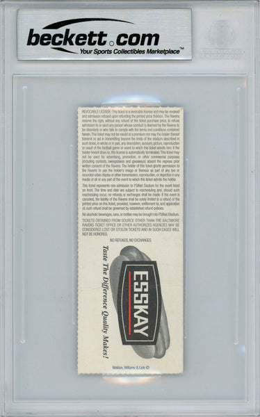 Ray Lewis Autographed/Signed 10/7/2001 vs Titans Ticket Beckett Slab 39170 The number in the listing title is just an inventory sku for our records and is not the authentication number. This is the exact item that you will receive so please see scans for condition. This is a official ticket that was personally autographed by Ray Lewis. This has been professionally slabbed by Beckett Authentication Services and includes a certificate of authenticity from Denver Autographs.