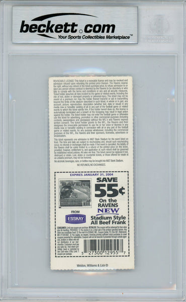 Ray Lewis Autographed/Signed 11/2/2003 vs Jaguars Ticket Beckett Slab 39166 The number in the listing title is just an inventory sku for our records and is not the authentication number. This is the exact item that you will receive so please see scans for condition. This is a official ticket that was personally autographed by Ray Lewis. This has been professionally slabbed by Beckett Authentication Services and includes a certificate of authenticity from Denver Autographs.