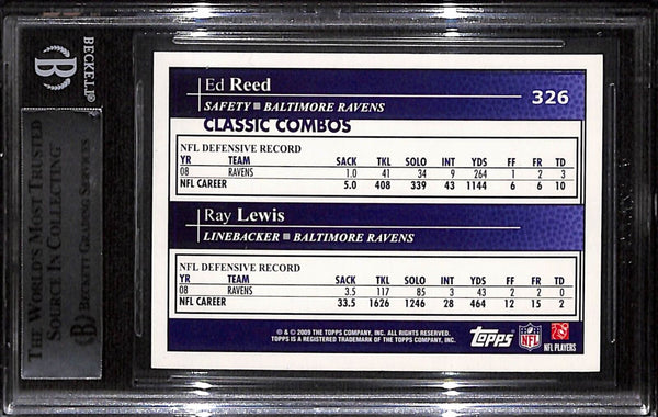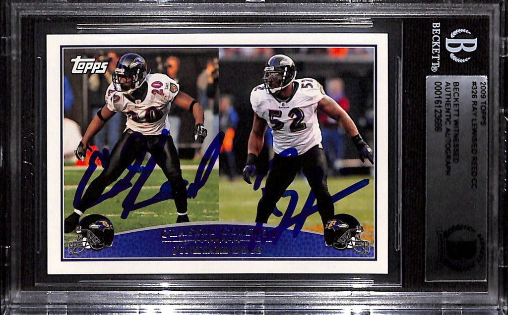 The number in the listing title is just an inventory sku for our records and is not the authentication number. The item pictured is a stock photo unless otherwise noted. This is a 2009 Topps #236 slabbed trading card that was personally autographed by Ray Lewis and Ed Reed. Includes a certificate of authenticity from Beckett Authentication Services (BAS) and Denver Autographs.FREE SHIPPING within the USA on orders over $10!