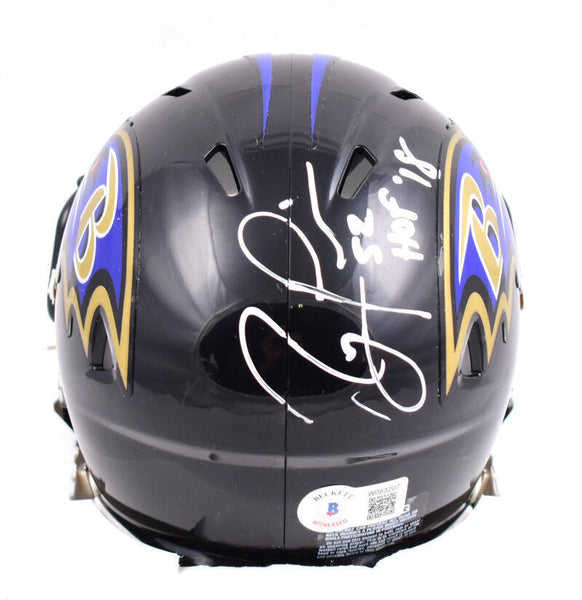 Ray Lewis Full Autographed Baltimore Ravens Speed Mini Helmet w/HOF- Beckett W Hologram *White This is a hand autograph Full Signature of Ray Lewis of the Baltimore Ravens on a Riddell Football Speed Mini Helmet. Inscribed HOF. This item has a Beckett Witnessed Authentication, which comes with a numbered hologram and a QR code for verification. You can view this item on the Beckett Authentication website, it shows when and where the item was signed. It was signed either at a public autograph appearance or a private signing. This is a stock photo of the item. Although you may not receive this exact item, the item you receive is virtually identical and brand new in great shape.