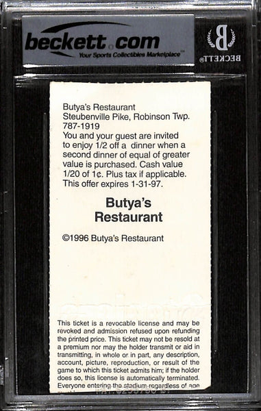 Ray Lewis Signed Baltimore Ravens 9/8/96 2nd Game Slab Ticket Beckett 37444 The number in the listing title is just an inventory sku for our records and is not the authentication number. The item pictured is a stock photo unless otherwise noted. This is a Baltimore Ravens Slabbed Ticket Stub dated 09/08/1996 (Ray Lewis 2nd Career Game) that was personally autographed by Ray Lewis. Includes a certificate of authenticity from Beckett Authentication Services (BAS) and Denver Autographs.