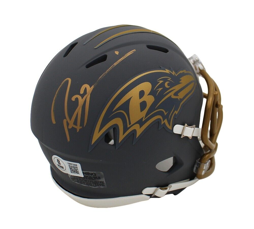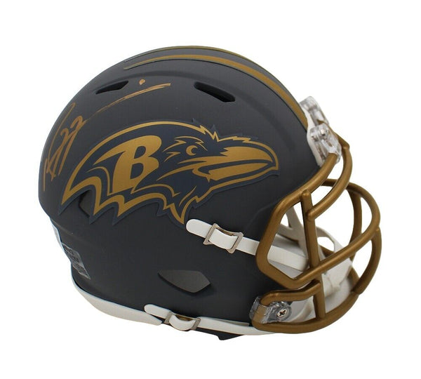 A Baltimore Ravens Speed Slate NFL Mini Helmet hand signed by Ray Lewis. The item and signature are in excellent condition. Ray was drafted in the NFL 1996 was in Round:1 and Pick:26. Ray is a 2x Super Bowl Champion, a Super Bowl MVP, and 2x NFL Defensive Player of Year. AUTHENTICATION: The item is accompanied by a Beckett Serial Numbered and Databased Hologram.