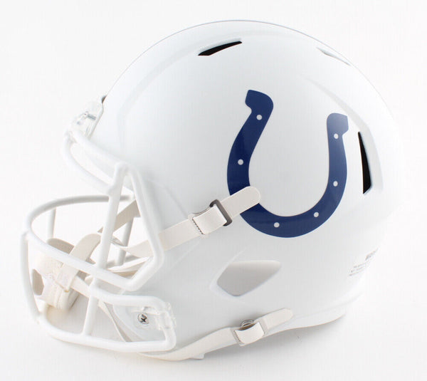 Riddell Indianapolis Colts full-size replica Matte White Alternate Speed helmet. Hand-signed by Reggie Wayne.The lot / autograph(s) includes an official PSA/DNA hologram and matching COA for authenticity purposes. The signing of this item was witnessed by PSA.Authentication: PSA COA