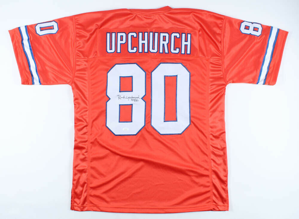 Custom on-field style jersey. Everything is sewn on, size XL. Hand-signed by Rick Upchurch. The lot / autograph(s) includes an official James Spence Authentication (JSA) hologram and matching COA for authenticity purposes. The signing of this item was witnessed by JSA.Authentication: JSA COA