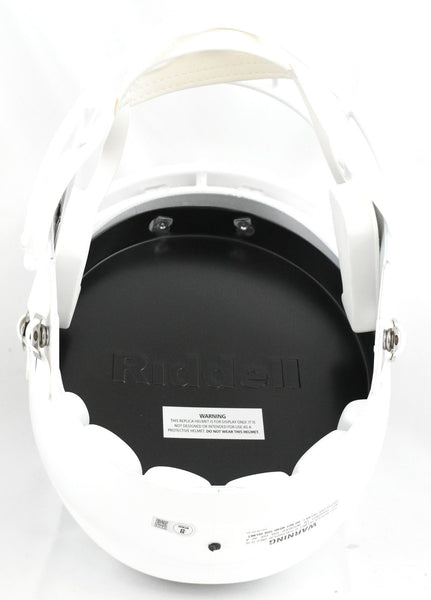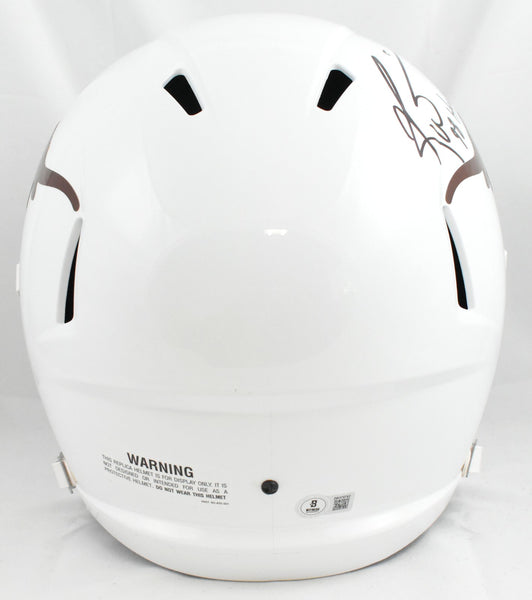 This is a Ricky Williams of the Texas Longhorns autographed Riddell football full size Speed Replica helmet. Inscribed 98 Heisman. This item has a Beckett Witnessed Authentication, which comes with a numbered hologram and a QR code for verification. You can view this item on the Beckett Authentication website, and it shows when and where the item was signed. It was signed either at a public autograph appearance or a private signing. This is a stock photo of the item. Although you may not receive this exact item, the item you receive is virtually identical, brand new, and in great shape. *Autograph location may vary* This is a Ricky Williams of the Texas Longhorns autographed Riddell football full size Speed Replica helmet. Inscribed 98 Heisman. This item has a Beckett Witnessed Authentication, which comes with a numbered hologram and a QR code for verification. You can view this item on the Beckett Authentication website, and it shows when and where the item was signed. It was signed either at a public autograph appearance or a private signing. This is a stock photo of the item. Although you may not receive this exact item, the item you receive is virtually identical, brand new, and in great shape. *Autograph location may vary*