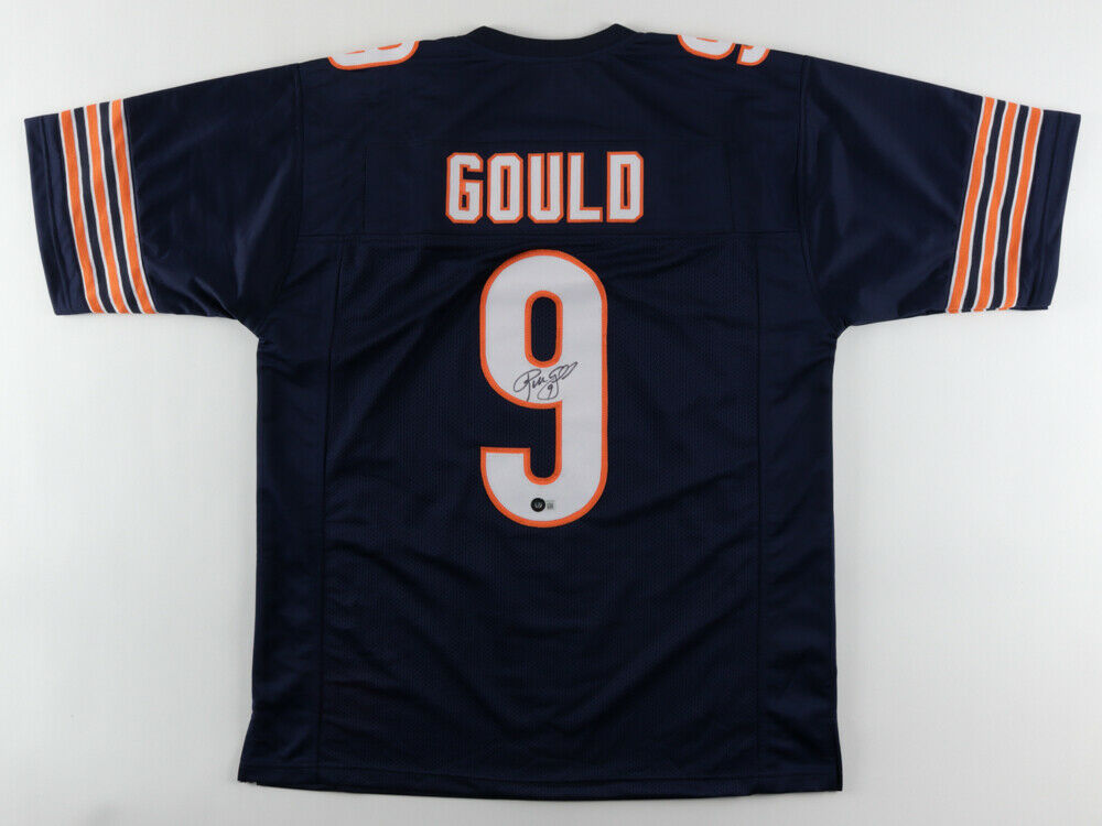 Custom on-field style jersey. Everything sewn on, size XL. Hand-signed by Robbie Gould.The lot / autograph(s) includes an official Beckett Authentication Services serially numbered hologram for authenticity purposes. The signing of this item was witnessed by Beckett.Authentication: Beckett Hologram