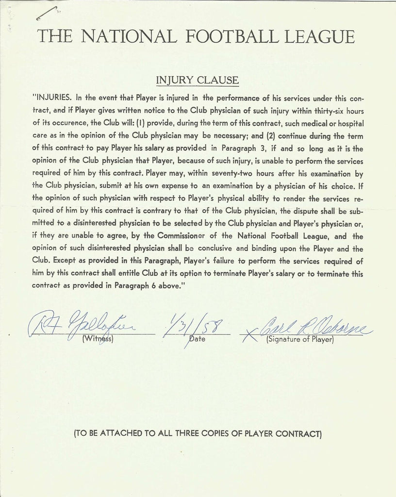 Roddy Osborne Cleveland Browns Signed/Autographed 1958 NFL Injury Clause. The Seller guarantees that this signature will pass all Authentication processes.