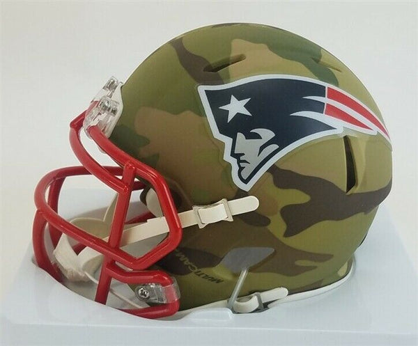 This autographed Riddell Speed Camo mini helmet has been personally hand-signed by Rodney Harrison of the New England Patriots. This autograph is certified by Patriots Alumni Club. It comes with the numbered hologram and matching Certificate of Authenticity.