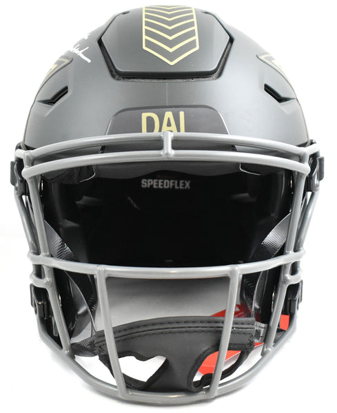 This is a Roger Staubach of the Dallas Cowboys autographed Riddell football full size Salute to Service 2025 SpeedFlex Authentic helmet. This item has a Beckett Witnessed Authentication, which comes with a numbered hologram and a QR code for verification. You can view this item on the Beckett Authentication website, and it shows when and where the item was signed. It was signed either at a public autograph appearance or a private signing. This is a stock photo of the item. Although you may not receive this exact item, the item you receive is virtually identical, brand new, and in great shape. *Autograph location may vary* This is a Roger Staubach of the Dallas Cowboys autographed Riddell football full size Salute to Service 2025 SpeedFlex Authentic helmet. This item has a Beckett Witnessed Authentication, which comes with a numbered hologram and a QR code for verification. You can view this item on the Beckett Authentication website, and it shows when and where the item was signed. It was signed either at a public autograph appearance or a private signing. This is a stock photo of the item. Although you may not receive this exact item, the item you receive is virtually identical, brand new, and in great shape. *Autograph location may vary*