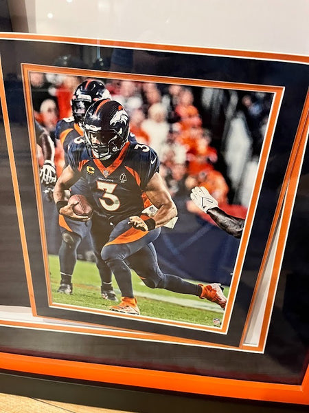 The product is an officially licensed Russell Wilson autographed Denver Broncos Nike navy jersey framed by Fanatics with a Certificate of Authenticity. This unique collectible item is perfect for any football fan looking to add a special piece to their sports memorabilia collection. The autographed jersey is a rare and valuable piece for fans of the Denver Broncos or Russell Wilson, showcasing their genuine connection to the team through the player's own signature.Frame is sold as is condition.