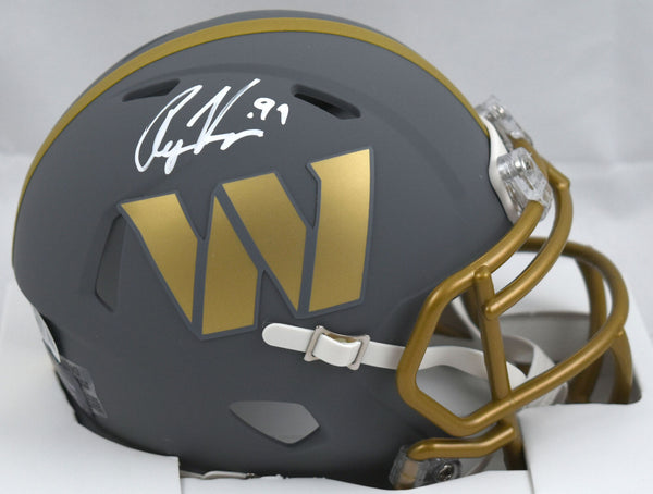 This is a Ryan Kerrigan of the Washington Commanders hand autographed Riddell Football Slate Speed Mini Helmet. It has a Beckett Witnessed Authentication, which comes with a numbered hologram and a QR code for verification. You can view this item on the Beckett Authentication website and it shows when and where the item was signed. It was signed either at a public autograph appearance or a private signing. This is a stock photo of the item. Although you may not receive this exact item, the item you receive is virtually identical, brand new, and in great shape. This is a Ryan Kerrigan of the Washington Commanders hand autographed Riddell Football Slate Speed Mini Helmet. It has a Beckett Witnessed Authentication, which comes with a numbered hologram and a QR code for verification. You can view this item on the Beckett Authentication website and it shows when and where the item was signed. It was signed either at a public autograph appearance or a private signing. This is a stock photo of the item. Although you may not receive this exact item, the item you receive is virtually identical, brand new, and in great shape.
