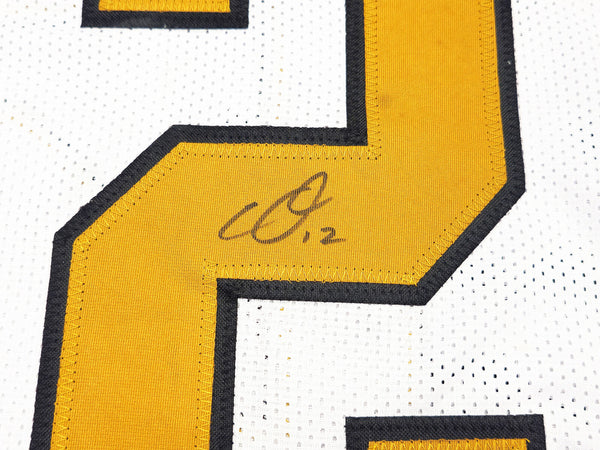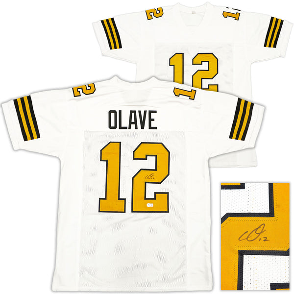 This is a White Color Rush Jersey that has been hand signed by Chris Olave. This is a custom jersey with no name brand. The approximate size is XL. It has nice sewn in name and numbers. This item has been witnessed and certified authentic by Beckett Authentication (BAS) and comes with their tamper-proof witness sticker.