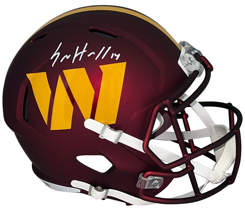 Sam Howell, quarterback for the Washington Commanders, has hand signed this Commanders Riddell Speed full-size replica helmet at a private signing. This item is authenticated by Beckett Authentication Services and was signed in the presence of one of their representatives. Their tamper-evident hologram featuring a QR code and serial number is on the item. The authenticity can be verified online by entering the serial number or scanning the QR code.Item pictured may not be the exact item you will receive. It will be similar quality, and we guarantee your satisfaction.