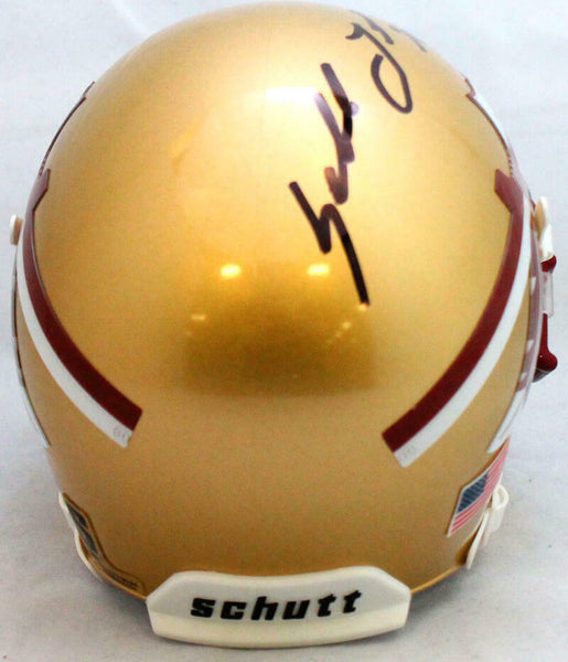 Sebastian Janikowski Autographed Florida State Seminoles Mini Helmet-Beckett W Hologram This is a Hand Autographed Helmet of Sebastian Janikowski of The Florida State University Seminoles. This is a Schutt Football Mini Helmet. This item has a Beckett Witness Protection Authentication, which Comes with a Beckett #'ed Sticker and a generic Beckett COA. You can view this item on the Beckett website, it shows when and where the item was signed. It was signed either at a public autograph appearance or a Private Signing. This is a stock photo of the item. Although you may not receive this exact item, the item you receive is virtually identical and brand new in great shape.