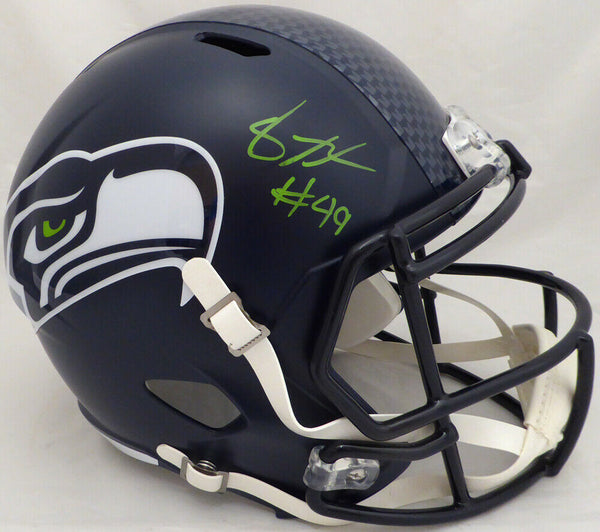 This is a Seattle Seahawks full size Speed replica Helmet that has been hand signed by Shaquem Griffin. This item was signed in the presence of a Mill Creek Sports representative and comes with their serial numbered hologram and matching certificate of authenticity.