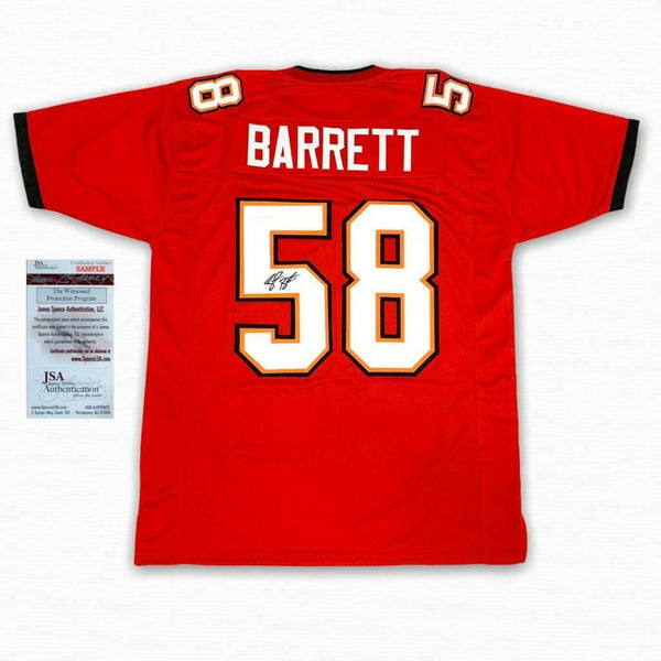 This signed item is brand new without tags or logos. This jersey is custom sewn in a size 52 (XL). All the letters and numbers are sewn on! This item will make a great gift or a great addition to any collection at an AFFORDABLE PRICE! ATHLETE: Shaquil "SHAQ" Barrett ITEM: Custom Sewn Jersey AUTHENTICATION: This item comes with a James Spence Authentication (JSA) Witness Certificate of Authenticity and serial #'ed hologram affixed to the item. To ensure authenticity, the hologram can be reviewed online. This process helps to ensure that the product purchased is authentic and eliminates any possibility of duplication or fraud. This item was signed in the presence JSA representative. NOTE: All of our autographed jerseys are custom jerseys, unless otherwise noted. Our custom jerseys are NON-BRANDED, have NO logos, NO tags, NO patches, NO emblems. All letters and numbers are SEWN-ON. The non-branded jerseys are made specifically for the player(s) to sign, for collectible purposes.