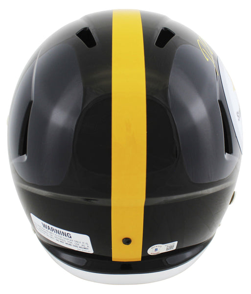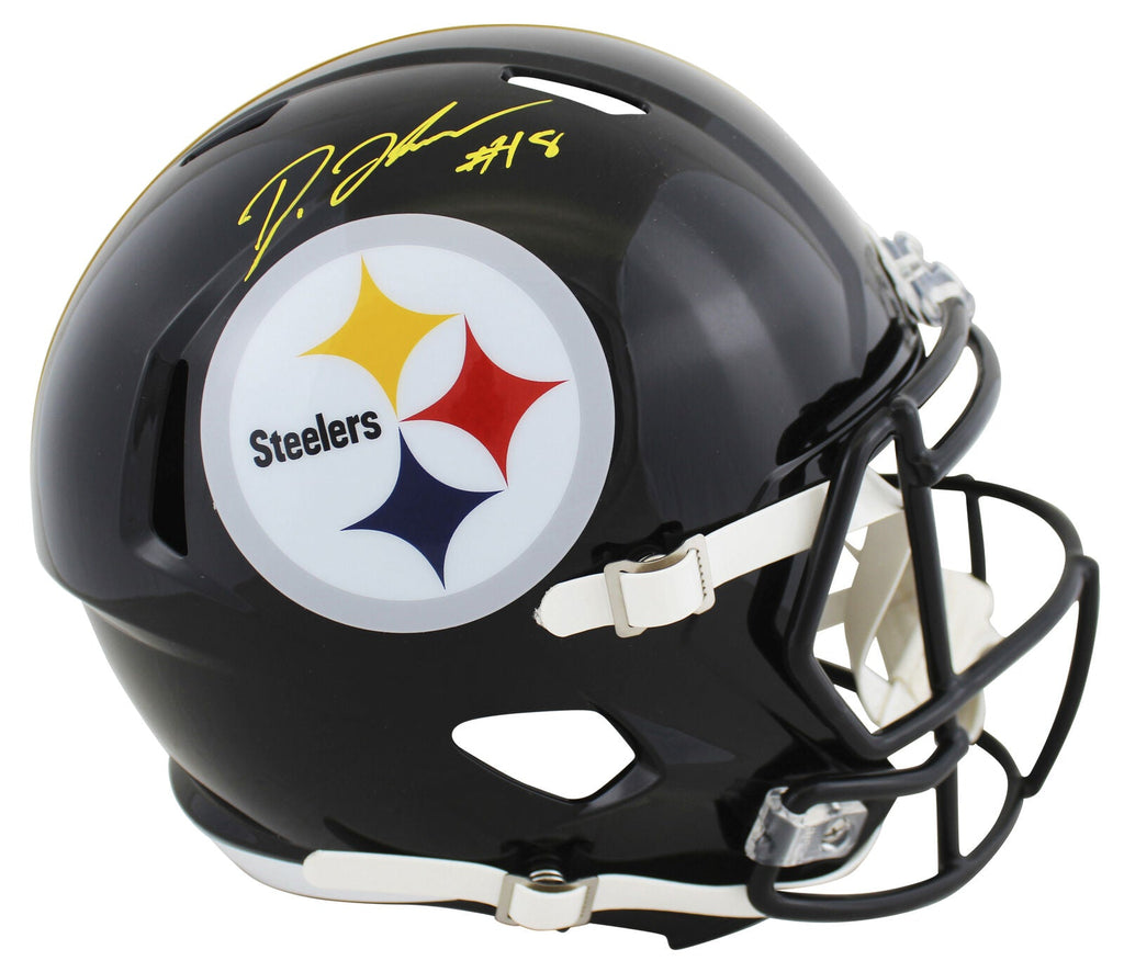 This Autographed Full Size Speed Rep Helmet has been Personally Signed by Diontae Johnson of the Pittsburgh Steelers. This item is 100% Authentic to include a hologram by Beckett Authentication Services. This item will come with the new Beckett Authentication hologram that has a scannable QR code rather than the traditional COA. If you would like to have a COA, you are welcome to reach out to Beckett for a printed certification once you receive your item. This is a BAS Witnessed Protection Program item which means a Beckett Authentication Service representative was present when this item was being signed. We conducted an autograph signing with Diontae Johnson where multiples of the same item were signed. While the photographs are representative of this item, the size, placement and strength of the signature may vary. Each item is hand signed, therefore, each autograph is unique. This item can be verified through BAS Witnessed.