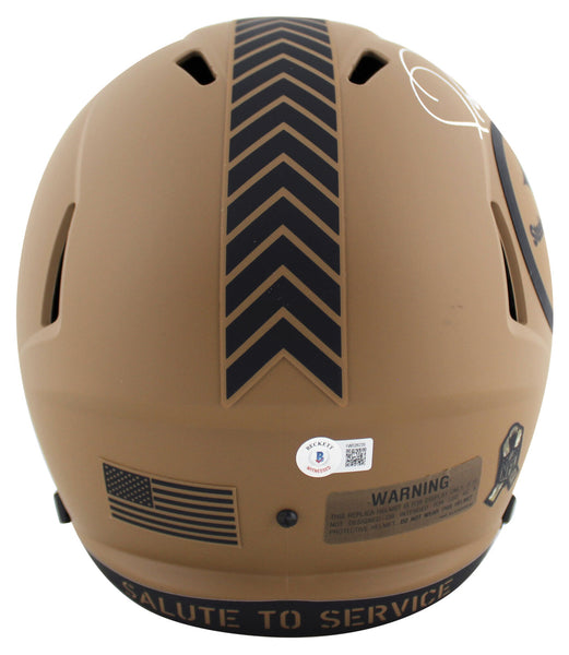 This Autographed Alternate 2023 Salute To Service II Riddell Full Size Speed Rep Helmet has been Personally Signed by Jerome Bettis of the Pittsburgh Steelers. This item is 100% Authentic to include a hologram by Beckett Authentication Services. This item will come with an affixed Beckett Authentication Services (BAS) authentication sticker, which includes a scannable QR code to verify authenticity. Please note that Beckett no longer provides serial-numbered COA cards, and the attached BAS sticker will serve as the complete authentication for this item. This is a BAS Witnessed Protection Program item which means a Beckett Authentication Service representative was present when this item was being signed. We conducted an autograph signing with Jerome Bettis where multiples of the same item were signed. While the photographs are representative of this item, the size, placement and strength of the signature may vary. Each item is hand signed, therefore, each autograph is unique. This item can be verified through BAS Witnessed.